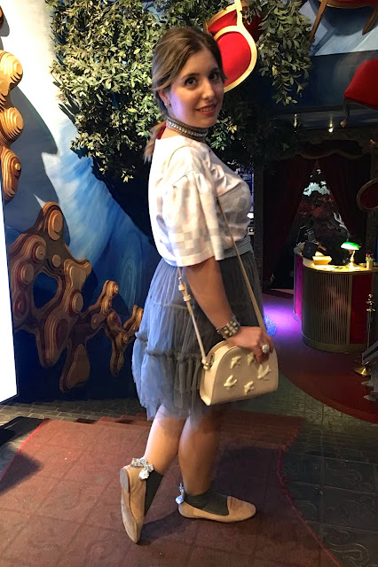 Como Alicia en el País de las Maravillas, una de mis historias preferidas, me siento en un lugar tan mágico y bonito. El look de bailarina va súper acorde al fondo y tanto la blusa, el choker, el fajín y el tutú lo podéis encontrar en SERENDIPITY.