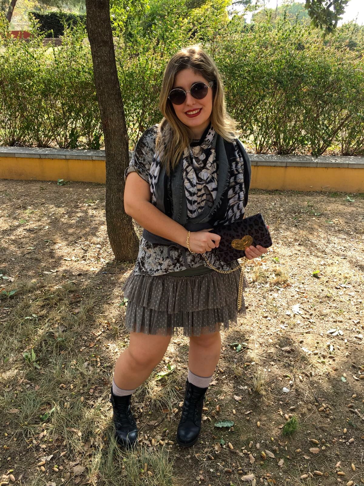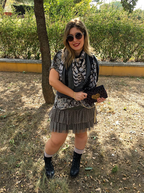 El look de hoy va de cómo los complementos pueden cambiar por completo el estilo de un look. La base del look ha empezado con la selección de la falda de tul-plumetí de NKN de color verde musgo.
